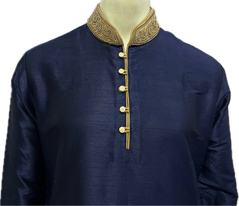 Designer Navy Blue Silk Kurta Pajama